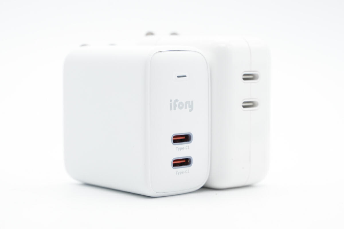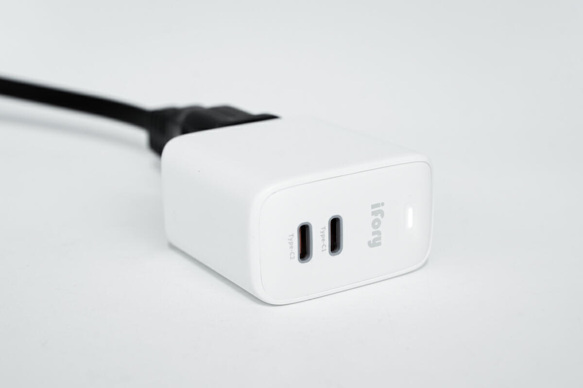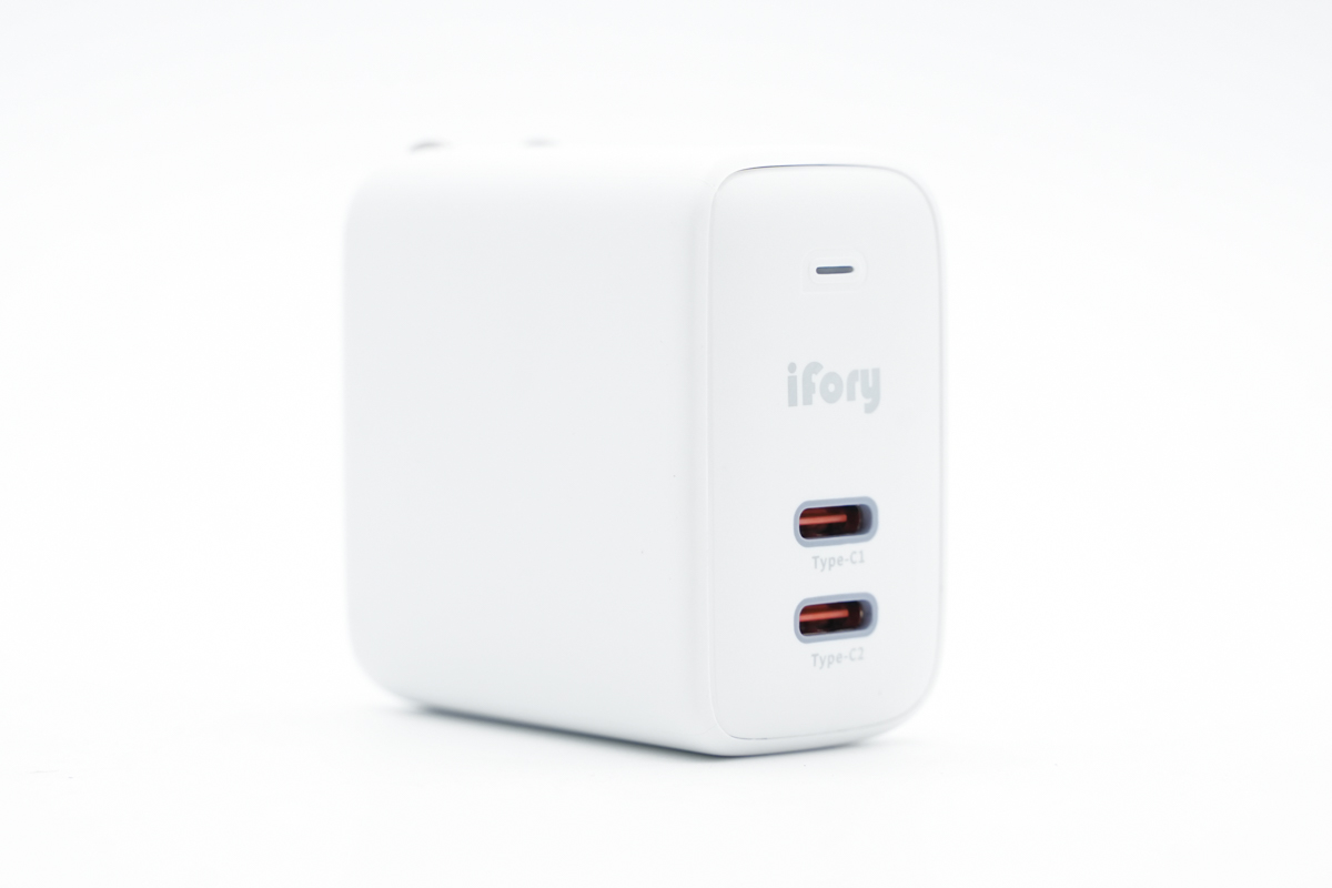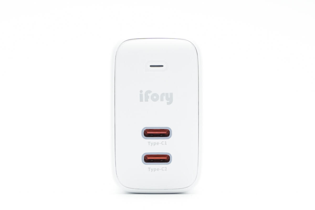 輸出端外殼印有ifory品牌,配備指示燈以及雙USB-C接口。