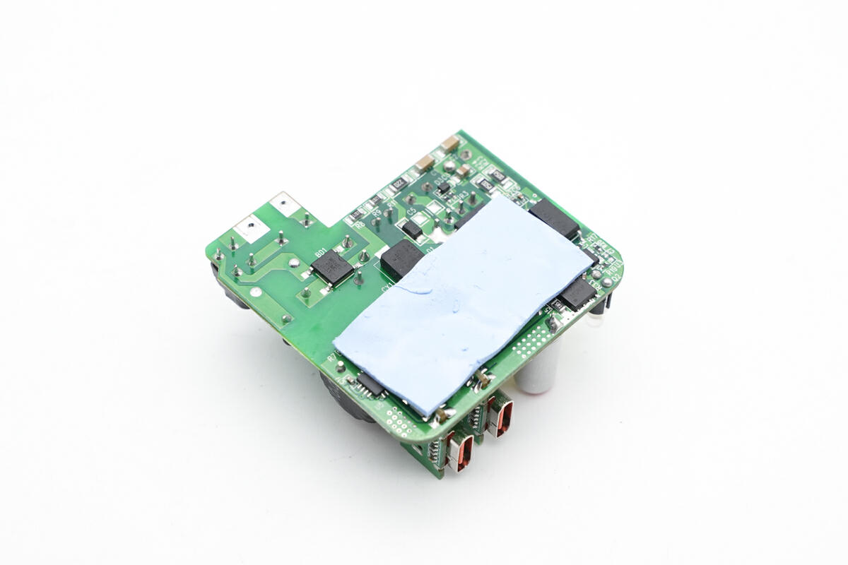 導熱墊為氮化鎵合封芯片,同步整流管和降壓轉換芯片散熱。