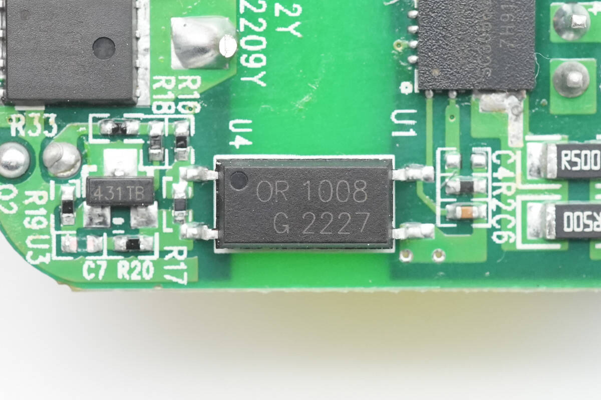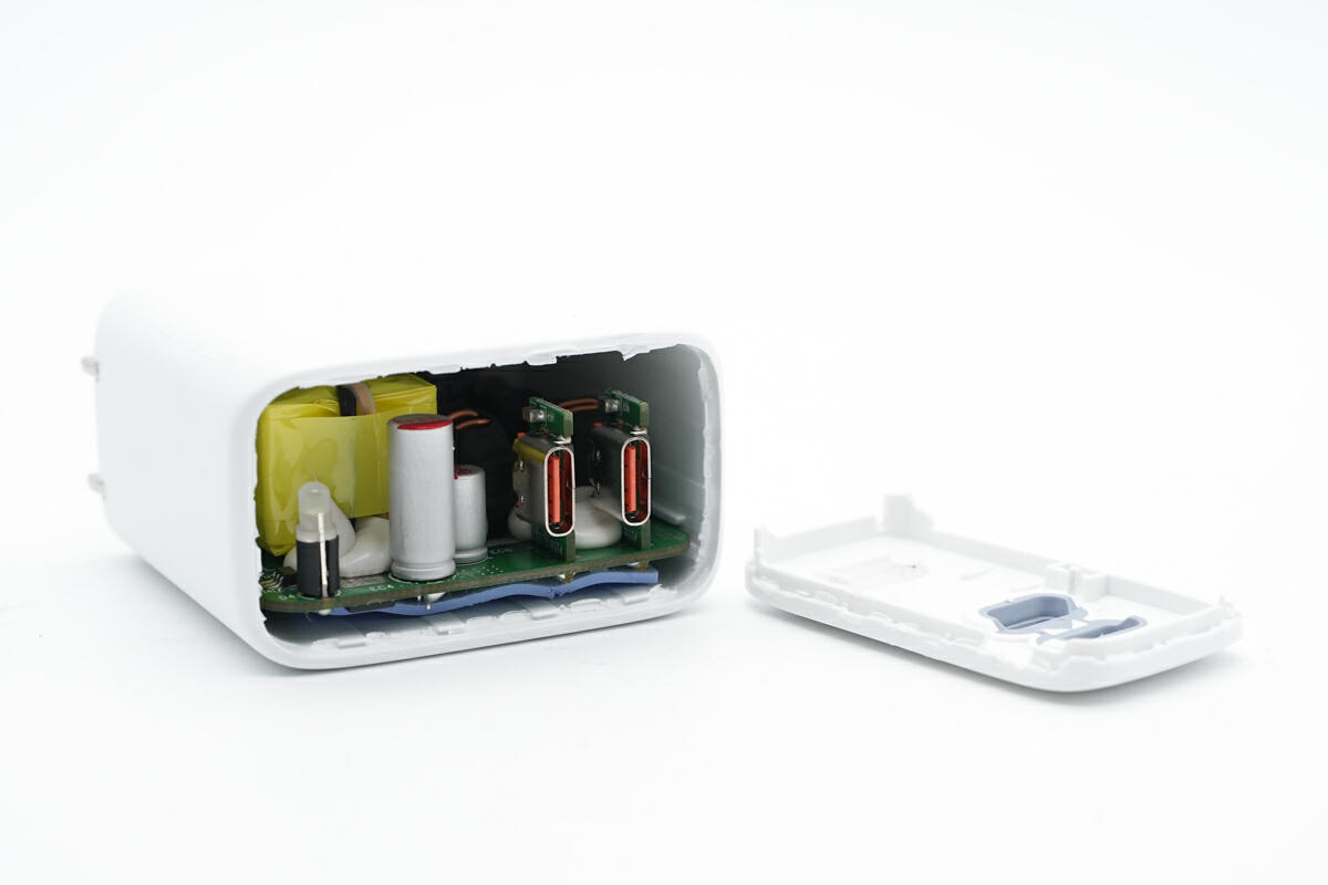 沿充電器輸出側面板打開外殼,露出內(nèi)部PCBA模塊。