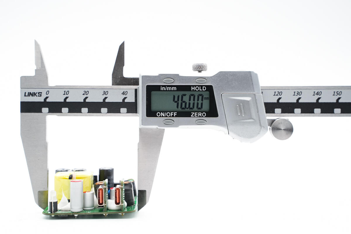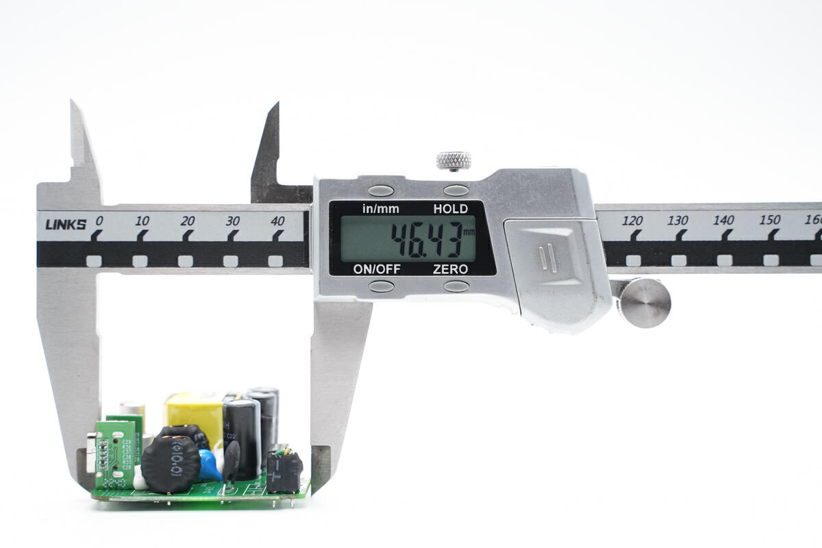 使用游標卡尺測得PCBA模塊長度約為46.43mm。