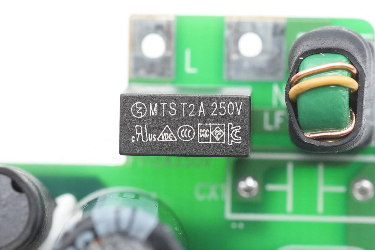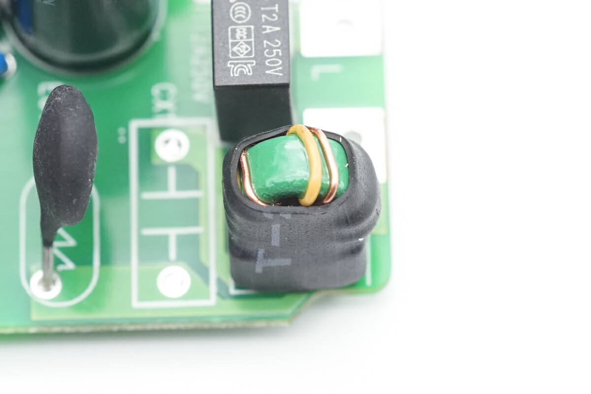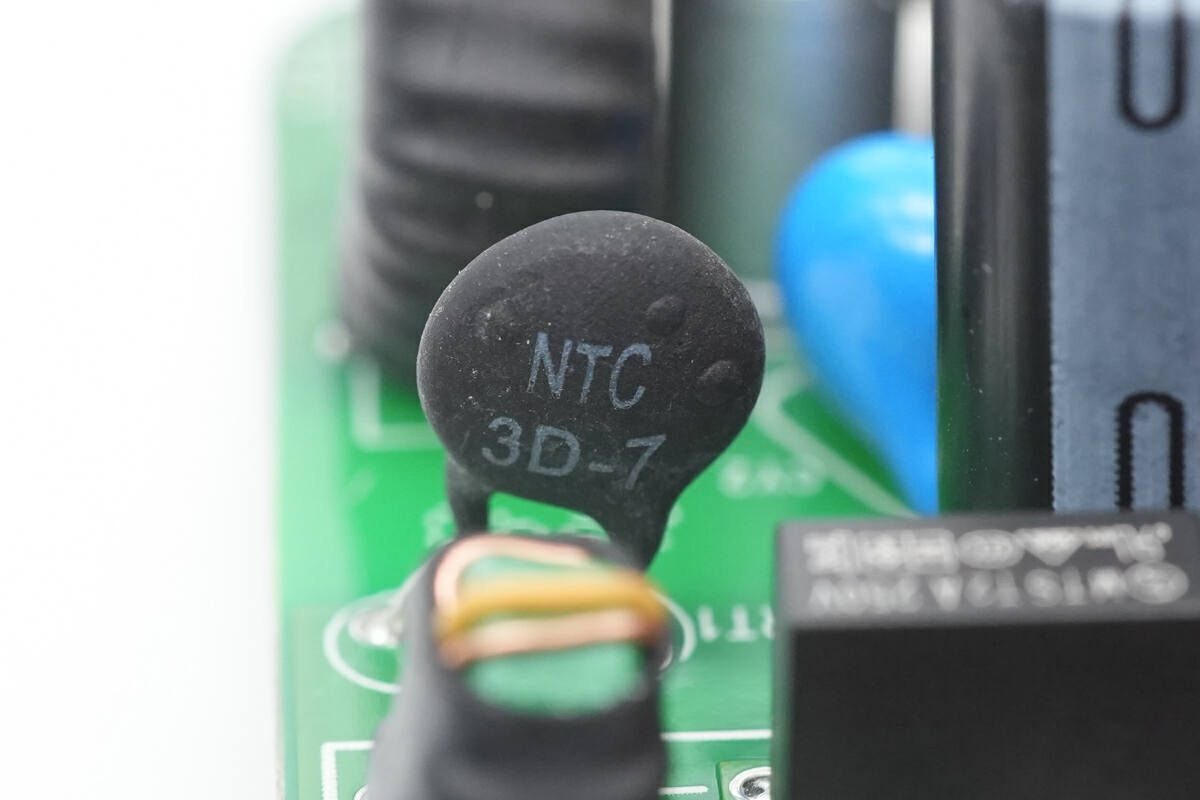 PCBA模塊輸入端焊接保險絲,共模電感和熱敏電阻,觸點用于連接彈片取電。