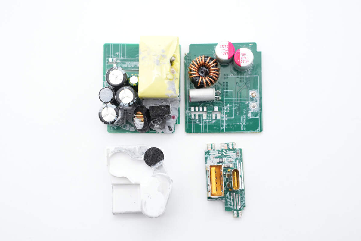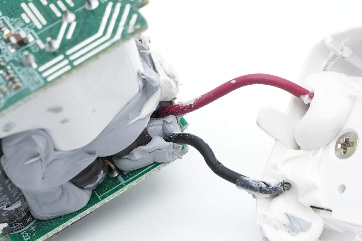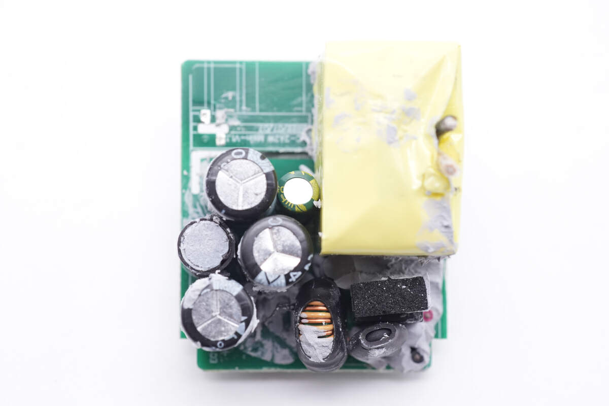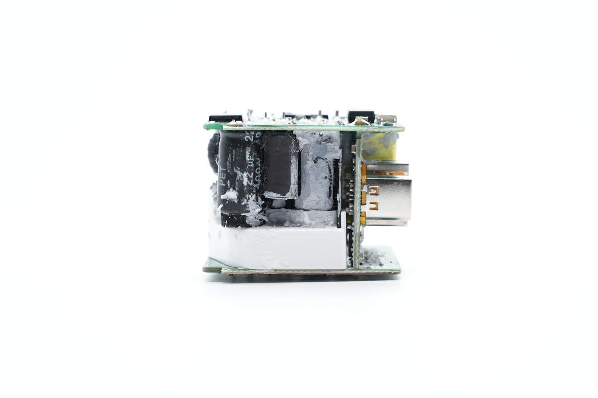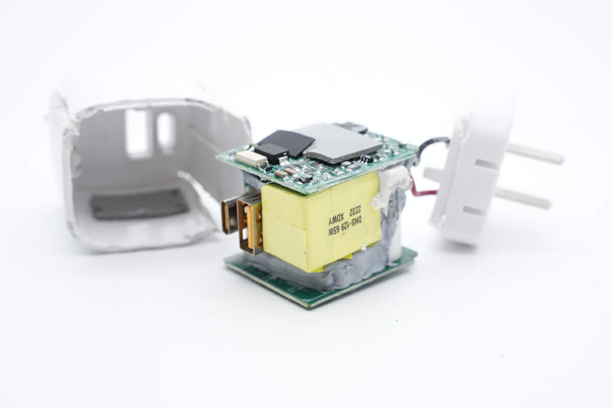 充電器內(nèi)部PCBA模塊采用多塊PCB焊接組成,內(nèi)部空間打膠固定成為一個(gè)整體。