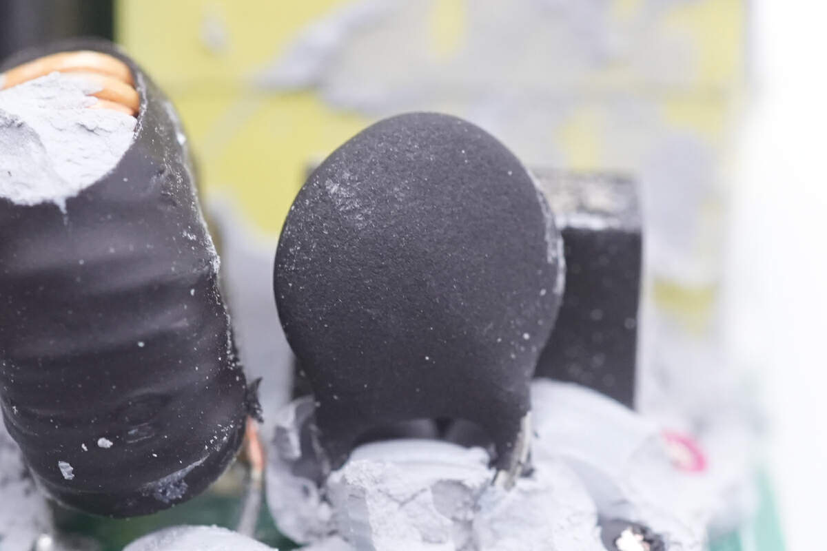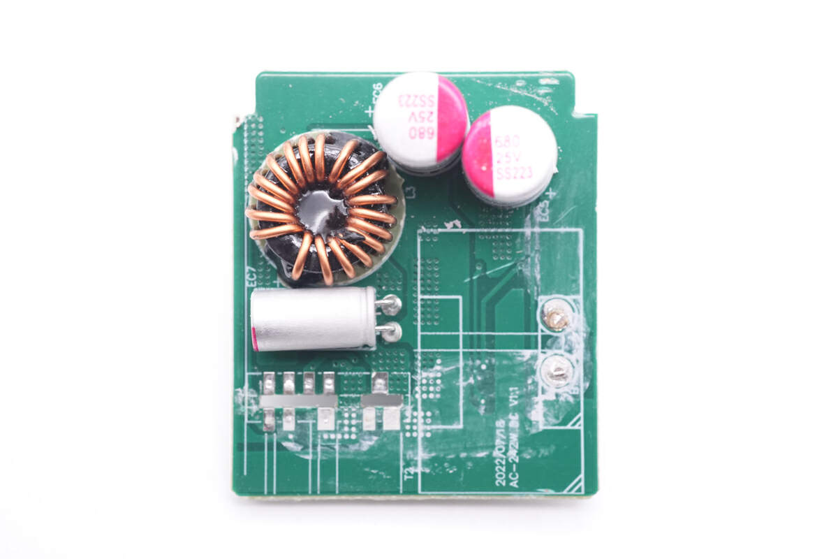 高壓側(cè)小板正面一覽,焊接NTC熱敏電阻,保險(xiǎn)絲,共模電感,高壓濾波電容和變壓器等。
