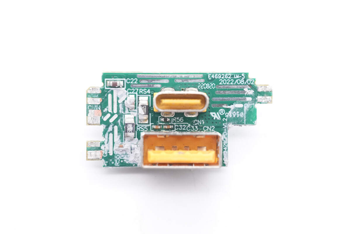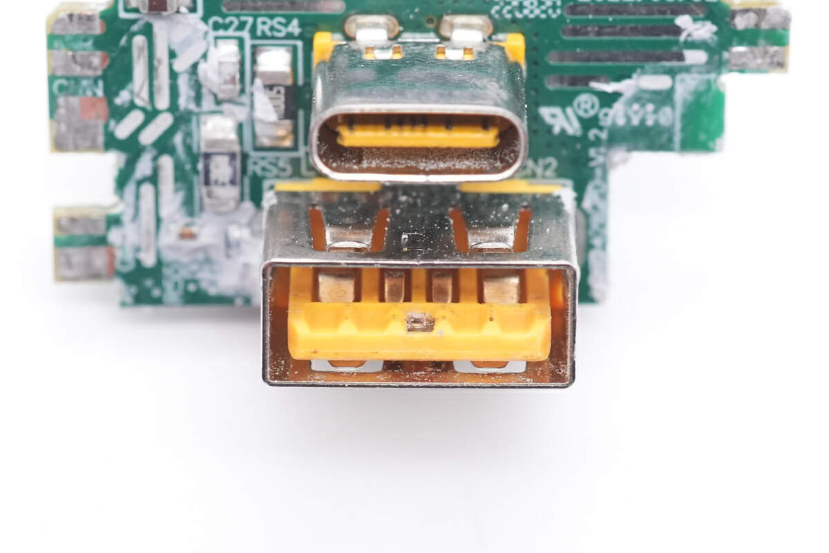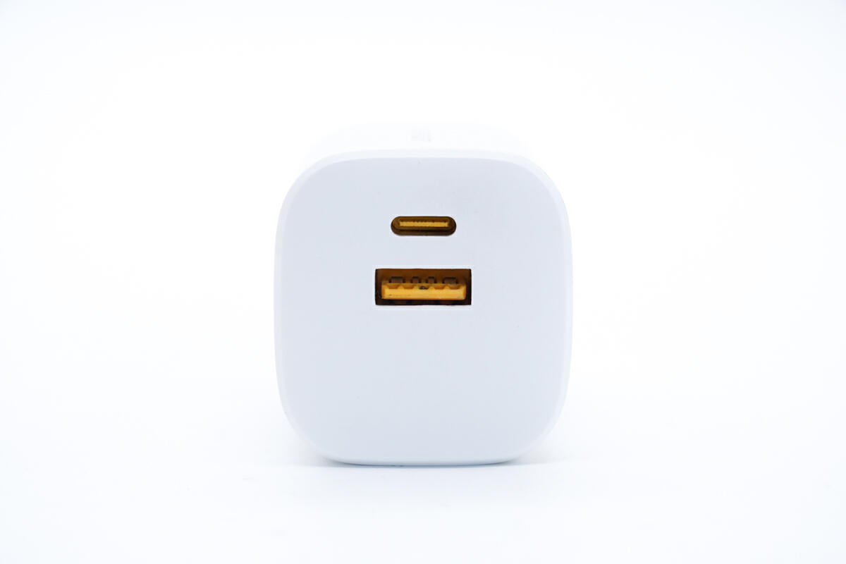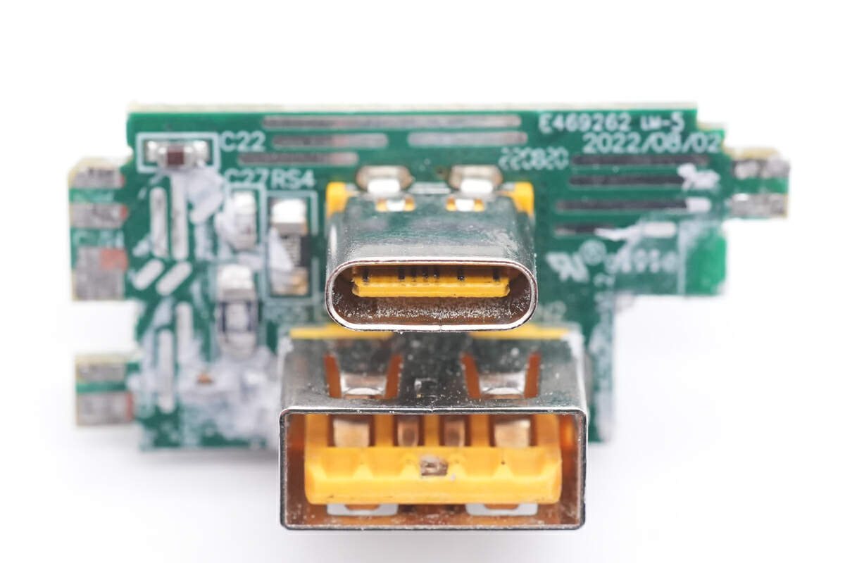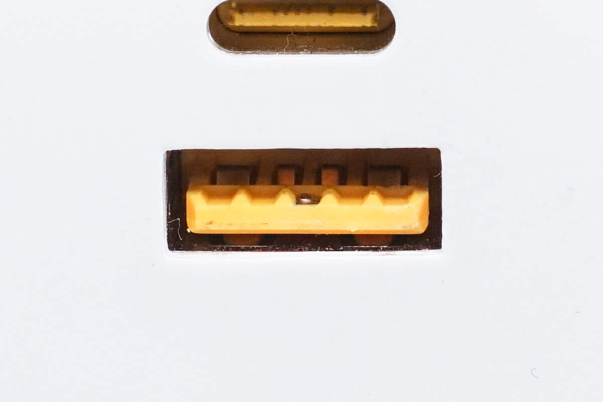 輸出端面板采用1A1C雙USB端口設(shè)計(jì),且膠芯均為黃色。