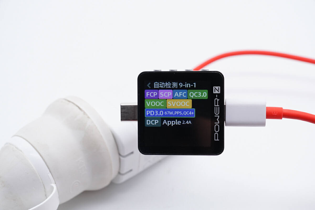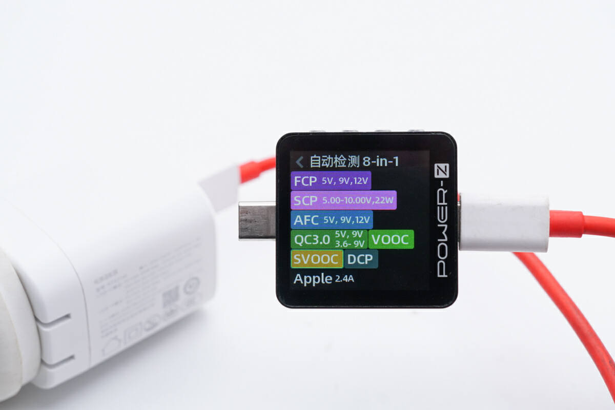 使用ChargerLAB POWER-Z KM003C測(cè)得USB-C口支持FCP、SCP、AFC、 QC3.0、VOOC、SuperVOOC、PD3.0、PPS、QC4+、DCP、Apple 2.4A充電協(xié)議。