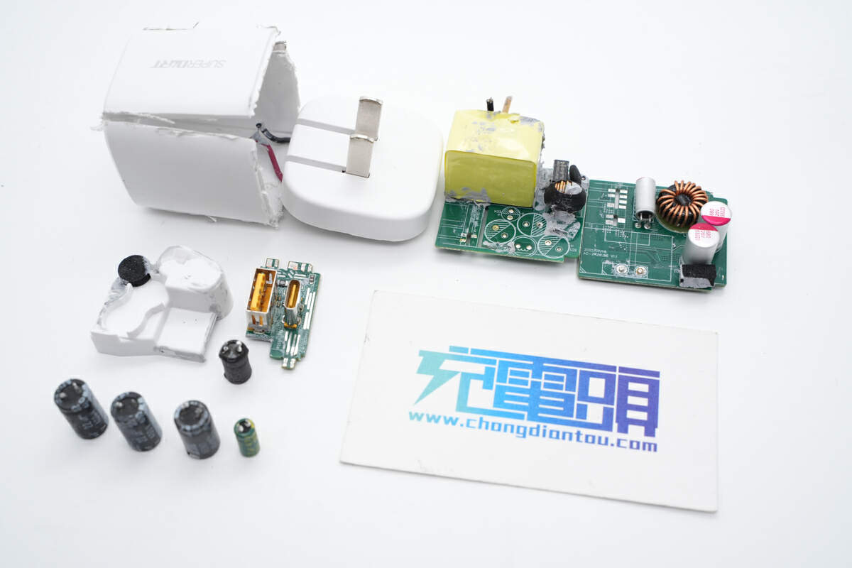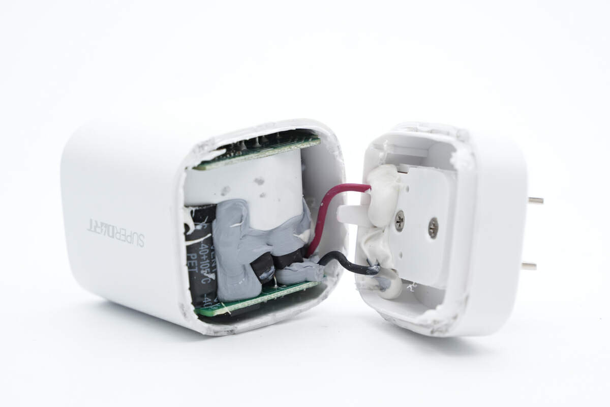 看完了真我這款67W氮化鎵充電器的外觀,尺寸和輸出性能后,下面就進(jìn)行拆解,看看內(nèi)部的做工用料。