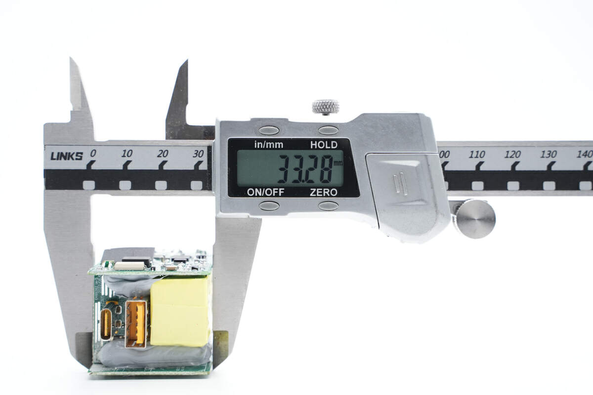 厚度約為42.05mm,體積約為84.32cm³,以充電器的功率67W計(jì)算,功率密度約為0.79W/cm³。