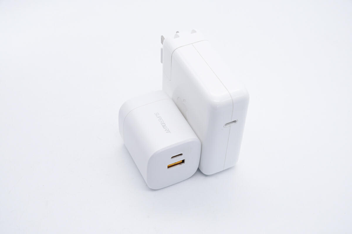 真我 67W雙口充電器與蘋果原裝67W充電器相比,體積優(yōu)勢(shì)非常明顯。
