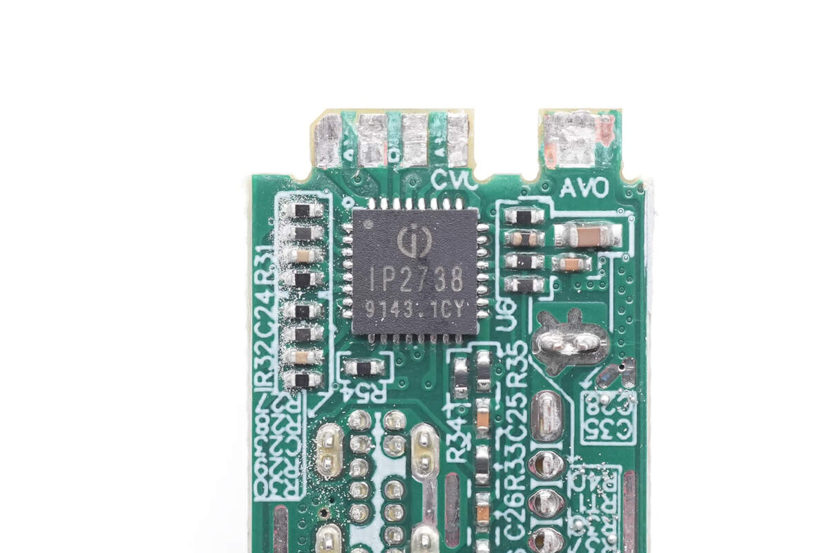 協(xié)議芯片采用英集芯IP2738,兩個(gè)接口輸出均由其控制。IP2738是一顆雙路協(xié)議芯片,支持雙口18-140W快充應(yīng)用,具備獨(dú)立的反饋控制,具備獨(dú)立的USB PD控制,相當(dāng)于兩顆IP2736整合到一顆芯片內(nèi)部,快充規(guī)格與IP2736相同。支持USB PD3.1 28V EPR檔位,并支持PD3.0/PPS等豐富全面的快充協(xié)議,兼容性非常好。