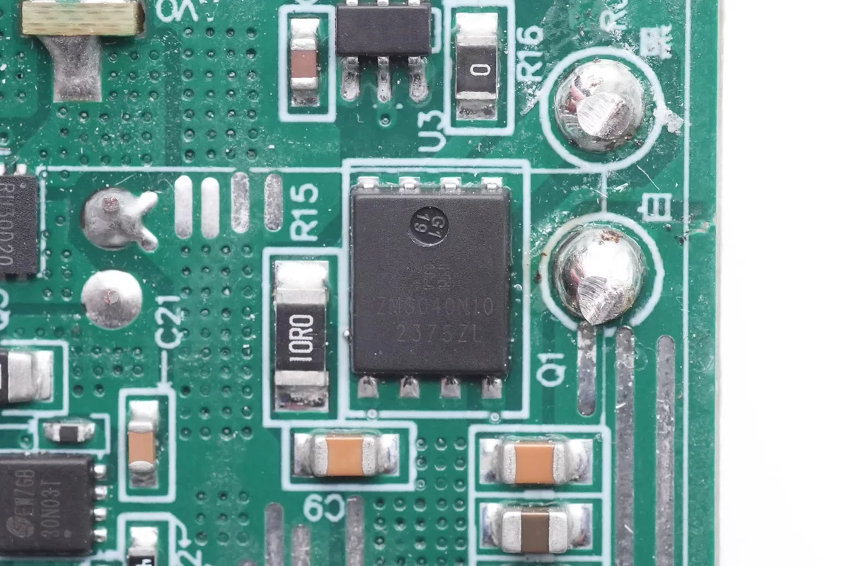 同步整流管來(lái)自真茂佳,型號(hào)ZMS040N10N,是一顆耐壓100V,導(dǎo)阻4mΩ的NMOS,采用DFN5*6封裝。
