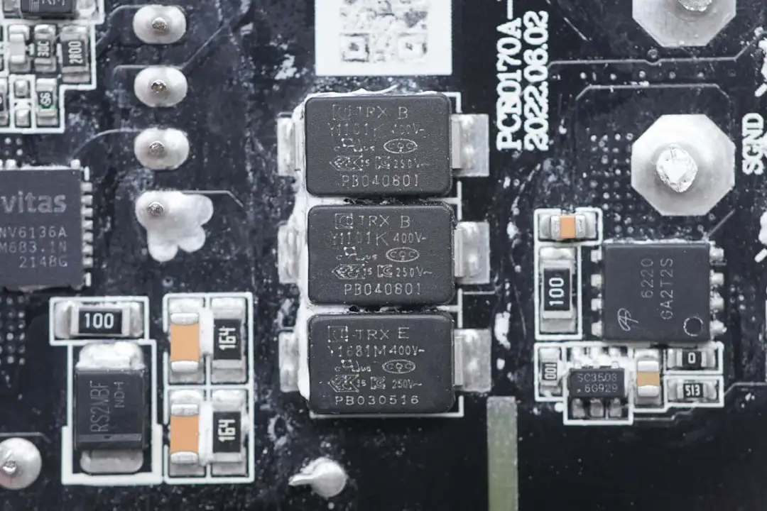 通過優(yōu)化二極管Ta/Tb(開通時(shí)間/關(guān)斷時(shí)間)較軟的恢復(fù)特性,大幅減少諧波振蕩的發(fā)生,從而減少或者減小橋堆周邊EMI抑制器件的使用或者使用規(guī)格,例如X電容,共模電感,差模電感等。