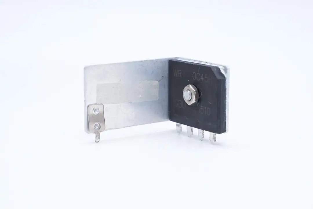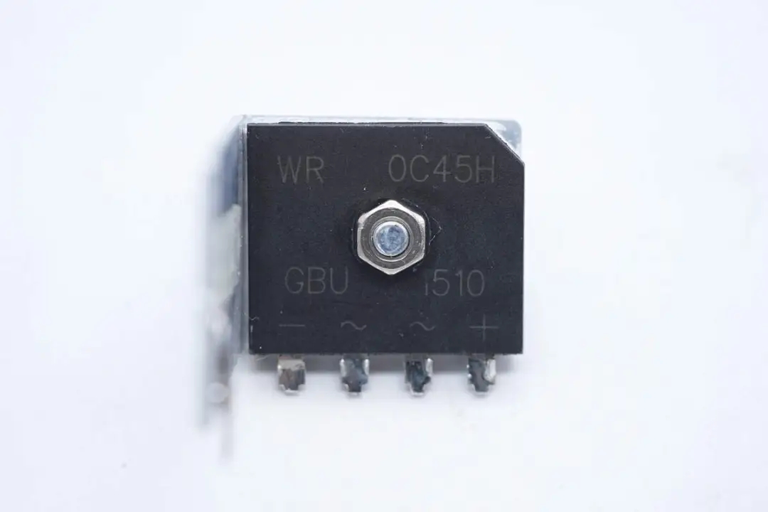 整流橋產(chǎn)品是由四只整流硅芯片作橋式連接,有四個(gè)引出腳。兩只二極管負(fù)極的連接點(diǎn)是全橋直流輸出端的“正極”,兩只二極管正極的連接點(diǎn)是全橋直流輸出端的“負(fù)極”,外用絕緣塑封而成。