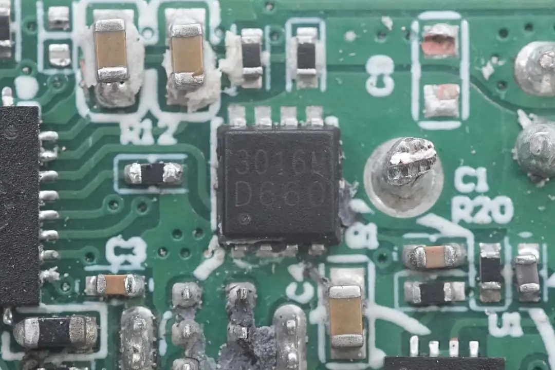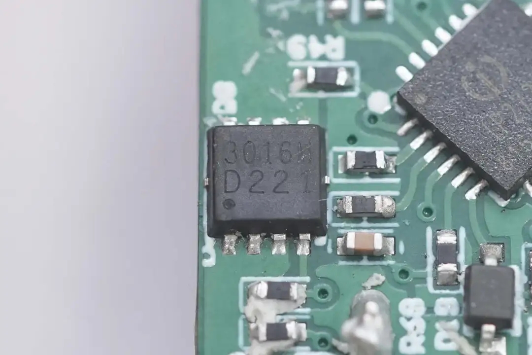 USB-A1口輸出VBUS開(kāi)關(guān)管特寫(xiě),絲印3016M的MOS管。