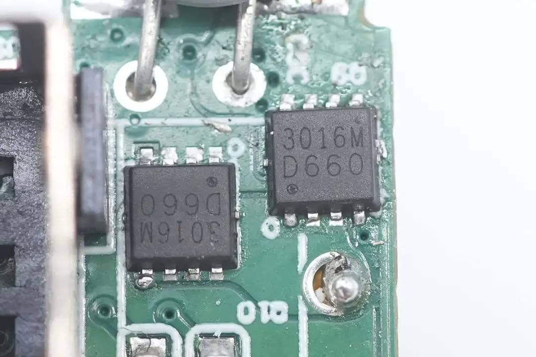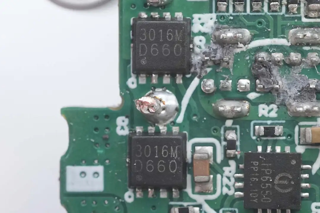 搭配的兩顆同步降壓開(kāi)關(guān)管也是絲印3016M的MOS管。