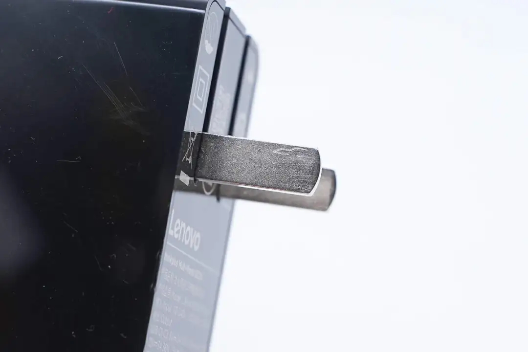 和蘋(píng)果96W充電器放在一起對(duì)比,聯(lián)想這款的體積要更小一些。