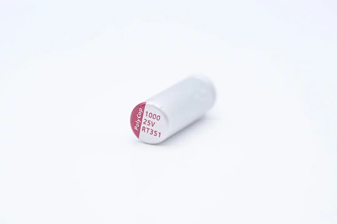 去掉膠套,電容來(lái)自PolyCap柏瑞凱,規(guī)格為25V1000μF。