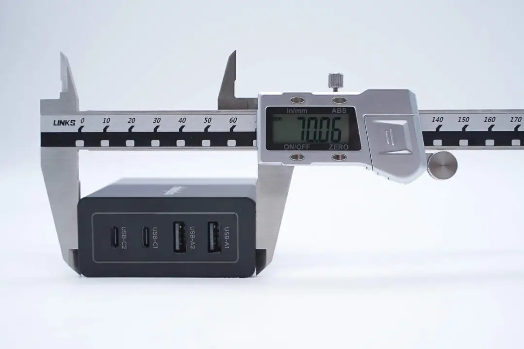 實(shí)測(cè)充電器機(jī)身長(zhǎng)度為72.96mm。