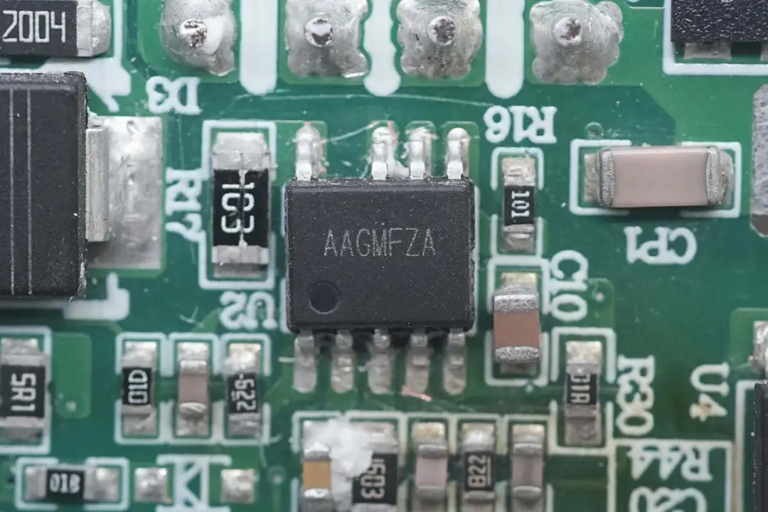開(kāi)關(guān)電源主控芯片特寫(xiě),絲印AAGMFZA。