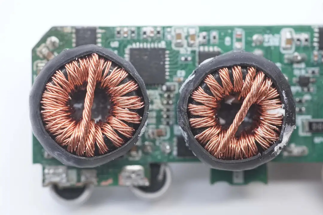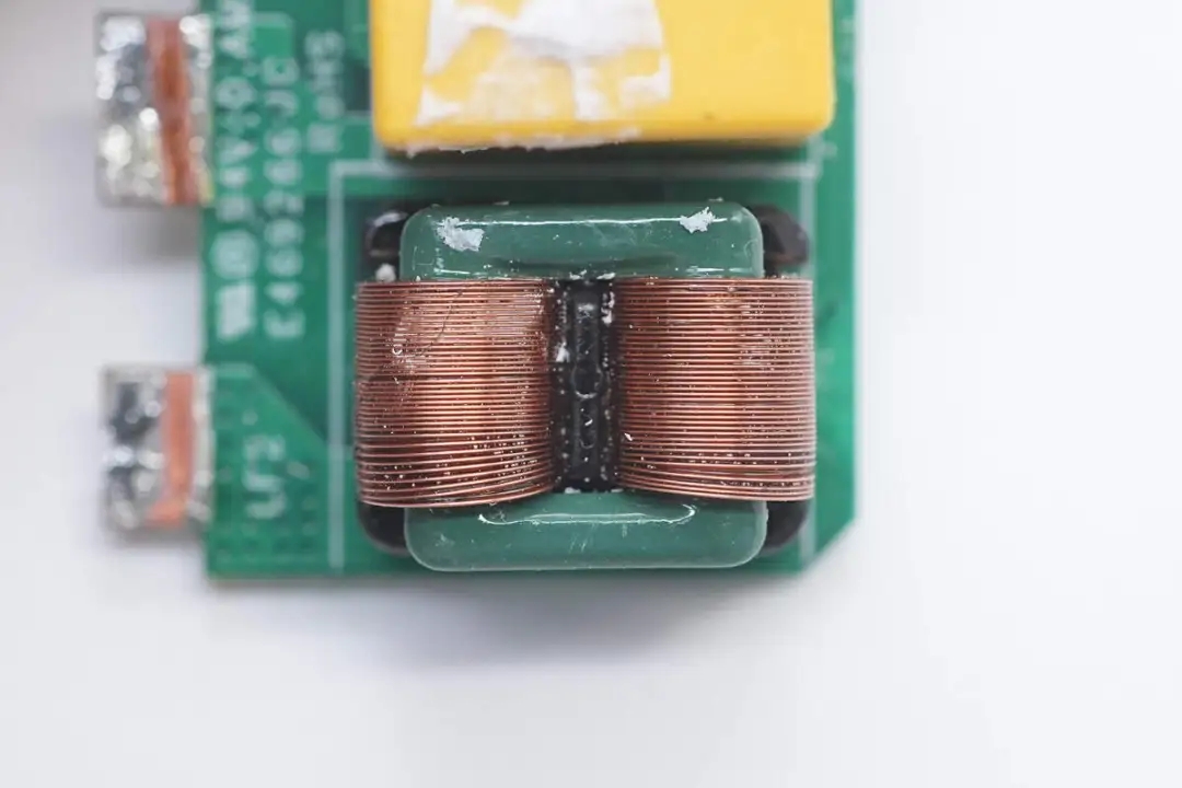另一顆共模電感扁平銅帶繞制,二級(jí)設(shè)計(jì)更好濾除EMI干擾。