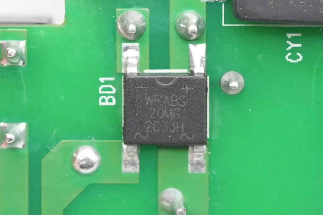 逆變橋是由四顆快恢復二極管整合一起,即將四顆芯片封裝到一個支架上作橋式連接,有四個引出腳。兩只二極管負極的連接點是直流輸出端的“正極”,兩只二極管正極的連接點是直流輸出端的“負極”,另兩個引腳是交流輸入端,外用絕緣塑料封裝而成。