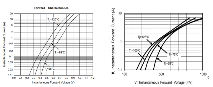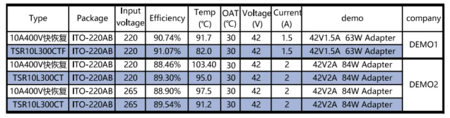 上圖的曲線(xiàn)和數(shù)據(jù)顯示,沃爾德的高壓肖特基二極管在相同的電流下比超快恢復(fù)二極管的VF值低,在42V1.5A和42V2A的電源上測(cè)試,效率和溫度都比超快恢復(fù)二極管表現(xiàn)更好。